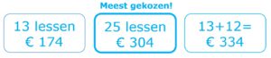 - op les 2 € 122 (€ 114 bij een ‘halve’ cursus)